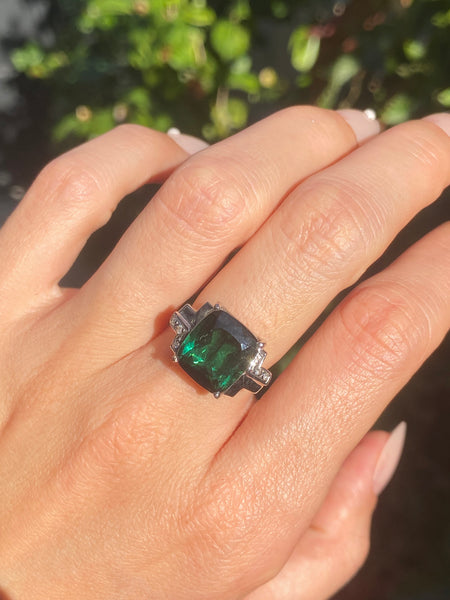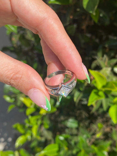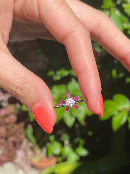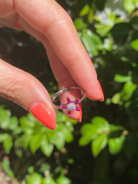 18k white gold pink sapphire diamond wavy ring size 6.5