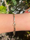 This is a vintage 14k barrel oval bracelet. It is 8.75” and can be shortened. It is approx 8.1g and 2.8mm wide