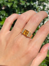 This is a vintage 14K citrine and diamond ring. It is size 7 and can be resized. It has approx 1.3 tcw citrine and 0.25 tcw diamonds. It is approximately 4.8g