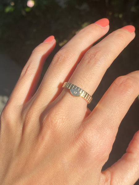 14k ribbed evil eye diamond ring size 6.5