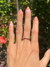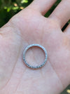 This is a vintage 14k white gold eternity ring. It has engravings all over. It is size 6.25 and not sizable.  It is approx 3.3g