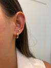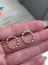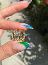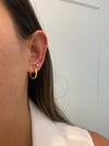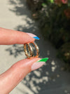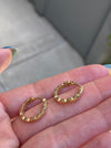 This is a pair of 14k scalloped geometric huggie hoop earrings. They are approx 2.1g  They hang 15.5mm top to bottom, 16.6mm front to back (diameter) and 2.7mm at the widest.
