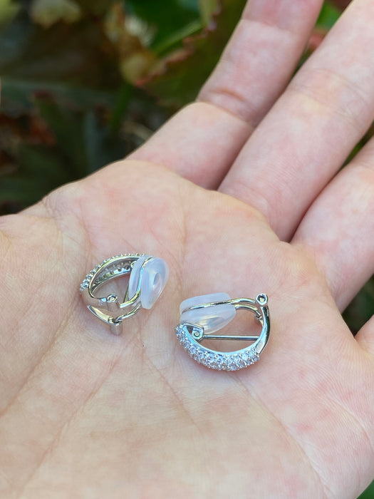 18k white gold 0.5 tcw diamond Huggie clip on or pierced earrings