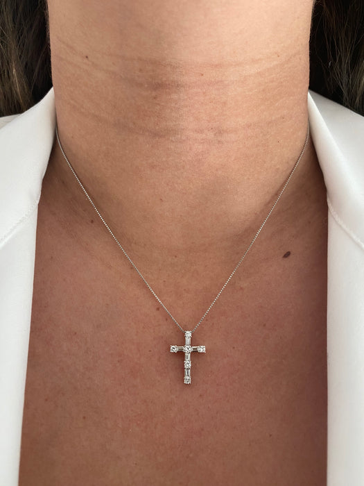 Platinum 900 diamond cross pendant with 17.75” adjustable shorter chain