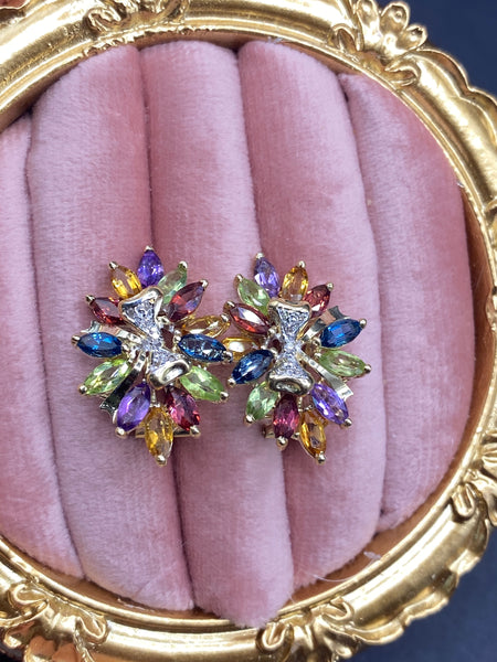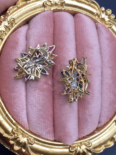 14k rainbow abstract bow omega back earrings
