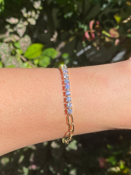 Quick Shop Preorder! 14k custom made fancy cut rainbow sapphire tennis bracelet 8” $4,908.00 Quick Shop