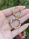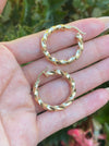 This is a pair of 14k vintage twisted hoop earrings. They are approx 2.5g. They measure approx 27.8mm top to bottom and 3.8mm wide