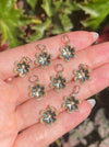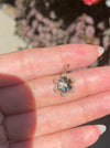 This is a 14k diamond flower pendant charm. It has 0.1 tcw diamonds. Chain not included . Charm is 17.6mm in length with bail- bail is 5mm