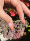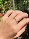 This is a 14k green garnet ring. It is size 6.5 and resizable. It has approx 0.8 tcw green garnet