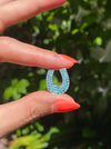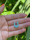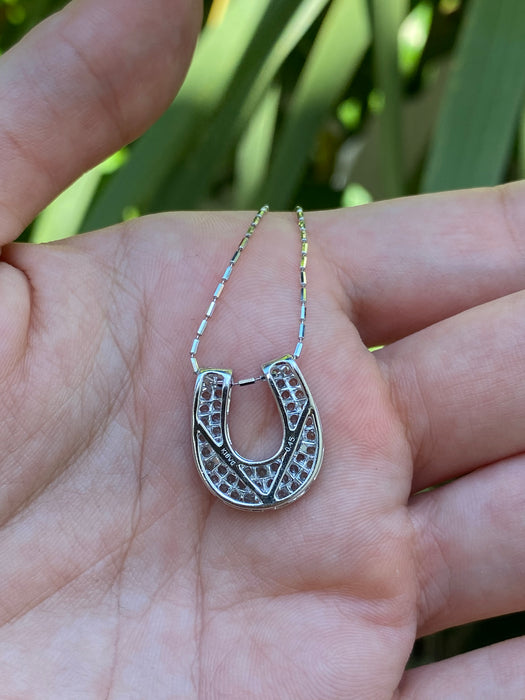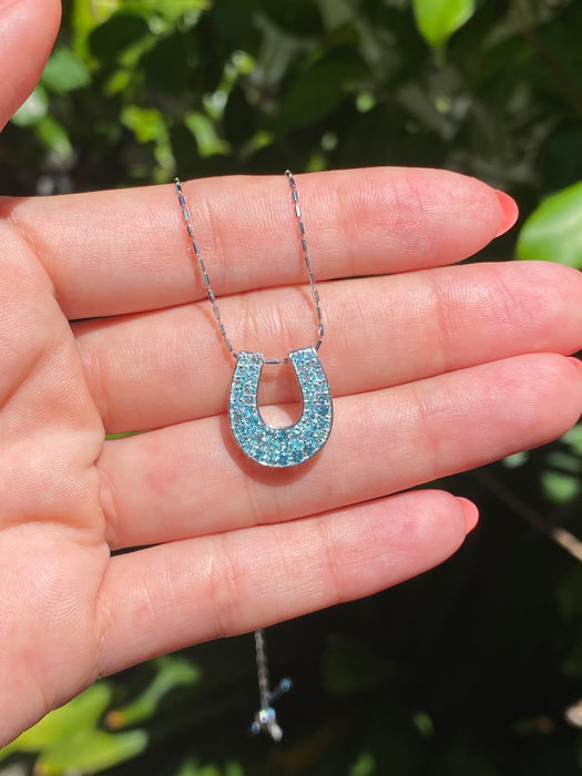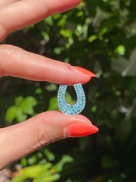 This is a vintage 18k aquamarine horseshoe slider pendant. It has 0.45 tcw aquamarine. Chain not included. It is approx 16.3mm by 14.3mm