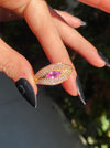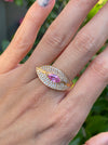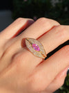 18k rose gold pink sapphire diamond leaf ring size 6.5