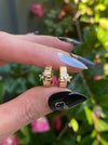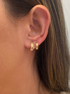 14k ribbed diamond star huggie earrings