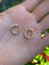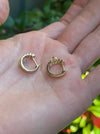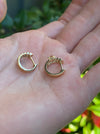 This is a set of 14k ribbed star diamond huggie earrings. They measure approx 11.8mm top to bottom, 12.4mm front to back (diameter) and 6.3mm wide. They are approx 3g