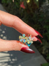 This is a 14k opal diamond flower bypass ring. It is by Effy. It has 2 carats opal and 0.09 tcw diamonds. It is size 7.25 and sizable. It retails for $3749