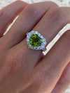 Platinum 950 peridot heart diamond ring size 6.5
