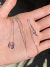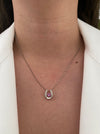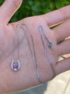 Platinum box chain with horseshoe pink sapphire heart diamond pendant 18”