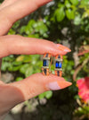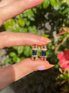 This is a set of vintage 14k blue sapphire huggie earrings. They have 2 carats of blue sapphire. They measure approx 16.8mm top to bottom and 5.4mm wide. They are approx 4.8g
