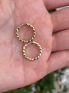 These are 14k solid curb Huggie earrings. They measure approx 14.2mm from top to bottom, 14.6mm (diameter) front to back and 3mm wide. This is a set of two! They are approx 3g