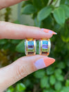 14k rainbow diamond omega earrings