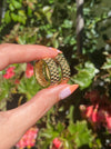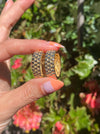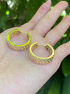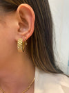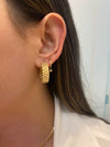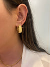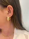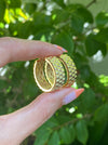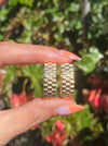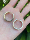 This is a pair of 14k vintage riveted link hoop earrings. They are approx 8g. They measure approx 23.7mm top to bottom, 24.5mm front to back (diameter) and 7.2mm wide