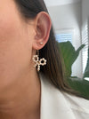 These are vintage 18k bow pearl earrings. They hang approx 1.5” and are hook back earrings. They are approx 3.3g
