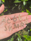 These are all 14k dead stock curb letters. They each have a 14k diamond bail enhancer that comes off! Chain not included. They are approx 1”-1.05” with the bail and the bail is 8mm