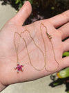 This is a 18k chain with 18k kite cut ruby and diamond star pendant. It has 0.6 tcw ruby and 0.08 tcw diamonds. Charm come off the chain. Chain is  16”. Both are approx 2g
