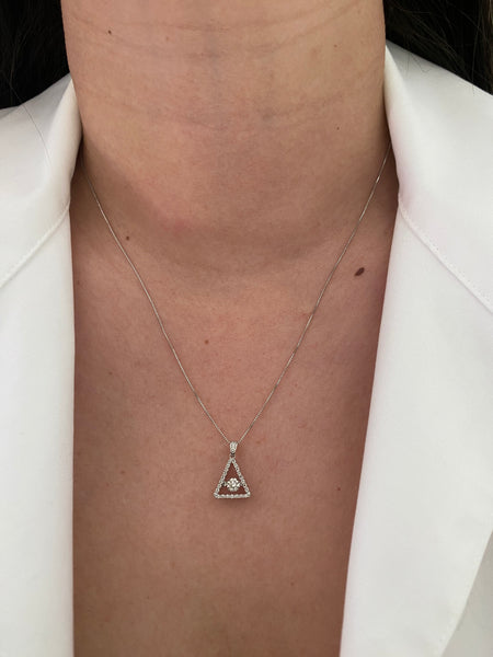 Quick Shop Platinum suspended diamond triangle pendant with box chain necklace 1,906.00 NIS Quick Shop