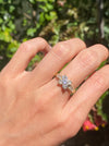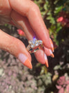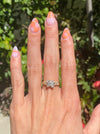 This is a vintage 18k diamond flower ring. It has 1.5 carat of gorgeous diamonds. It is size 5.75 and resizable. It is approx 4.5g