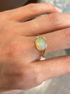 This is a vintage 18k opal and diamond ring. It has a 1.3 tcw opal. It is size 7.75 and sizable