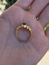 This is a vintage 14k blue sapphire diamond ring. It is size 6.75 and can be resized. It is approximately 4.4g