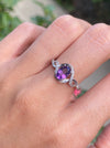 This is a 14k white gold diamond and amethyst ring. It has an approx 0.75 tcw amethyst and 0.12 tcw diamonds. It is size 6.5 and sizable