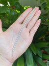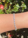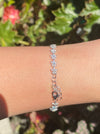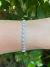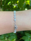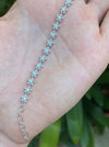This is a 14k white gold flower diamond tennis bracelet. It has 0.6 tcw natural gorgeous single cut round brilliant diamonds. It is approx 5.1g and 5mm wide. It is 6.25-7” adjustable and can be shortened