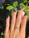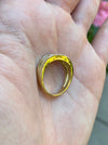 This is a vintage 18k wavy baguette diamond ring. It is 0.55 tcw diamonds. It is size 6.75 and sizable. It is approx 4g