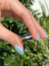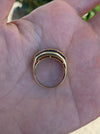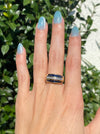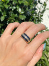 This is a vintage 14K blue sapphire and diamond ring. It is size 6.5 and can be resized. It has approx 1.6 tcw sapphire and 0.2 tcw diamonds. It is approximately 5.4g
