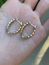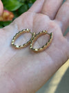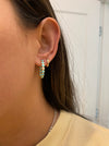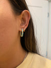 This is a set of 14k diamond turquoise hexagon Huggie earrings. They measure approx  22.8mm top to bottom, 18.4mm front to back (diameter) and 3.8mm wide. They are approx 5.2g