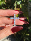 This is a vintage platinum 900 diamond cross slider, it has 2.02 tcw natural diamonds. It measures 3.8g and 27.3mm in length and 20mm across. Chain not included