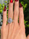 This is a vintage platinum 900 diamond marquise ring with diamond halo. It has a 2.19 tcw marquise diamond - VS 2 M - it has an additional 1.64 tcw round diamonds. It is size 7 & sizable. It is approx 11g