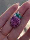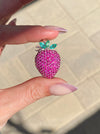 This is a vintage 14k white gold ruby and emerald strawberry charm. It is approx 9g and has 3.7 carats rubies with 0.67 tcw emeralds. Chain not included. It is 30.5mm in length with the bail and 18.2mm wide