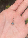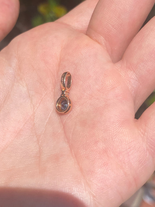 This is a 14k rose gold bezel set London blue topaz and diamond pendant. It is approx 14mm in length with the bail. Chain not included