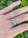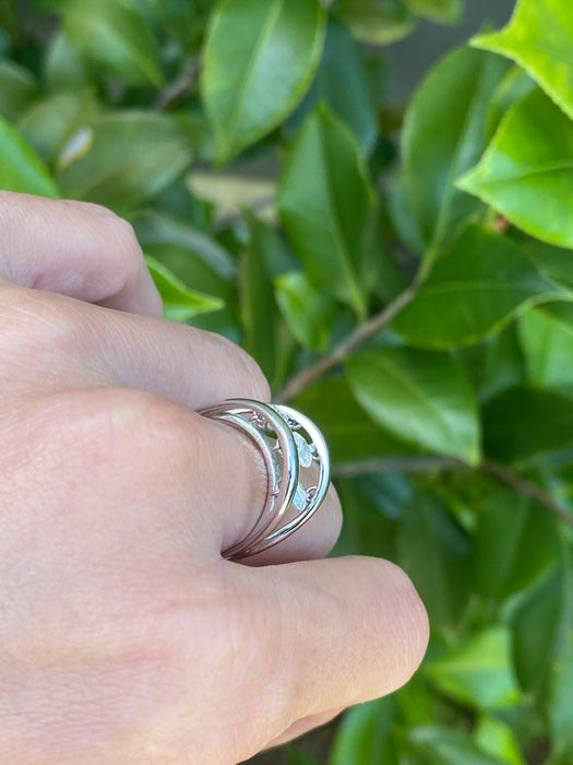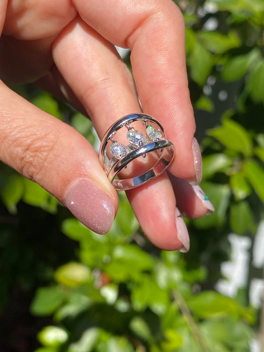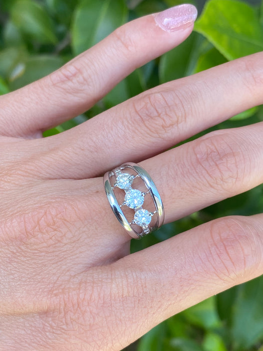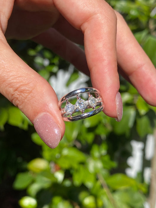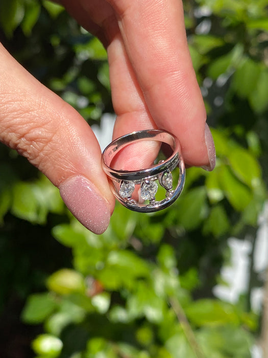 This is a vintage 18k white gold diamond ring. It has 3 suspended diamonds in the center. It has 1 carat of natural diamonds. It is size 6.5 and resizable. It is approx 4.3g