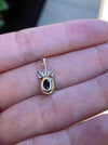 This is a 14k vintage blue sapphire diamond  pendant. It is approx 15.5mm in length. Bail is approx 3.4mm. Sapphire is approx 1 carat. Chain not included