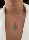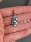 This is a vintage 14k cluster blue topaz charm. The bail opens in the back. It is approx 30.8mm with the bail. Bail is approx 7.5mm. Chain not included.