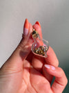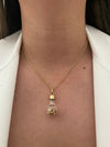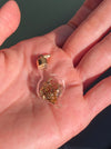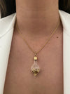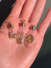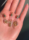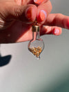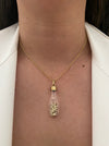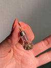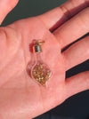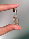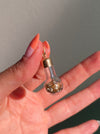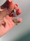 This is a vintage 14k glass bottle charm  with silver pieces inside that move.  Chain not included