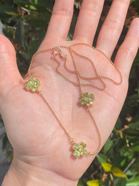 14k peridot clover bead station necklace 18”