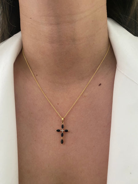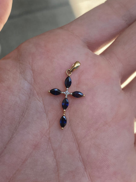 14k blue sapphire diamond cross pendant