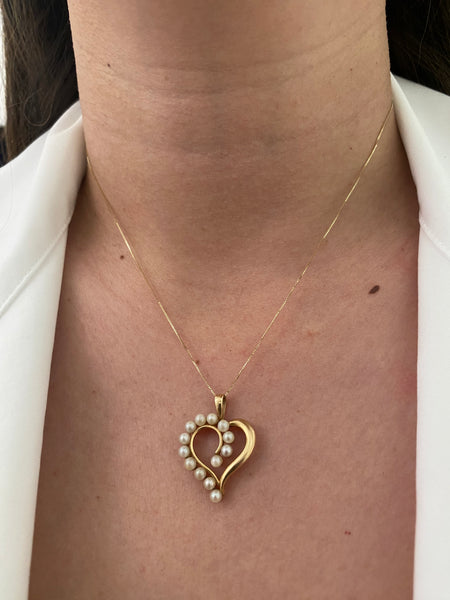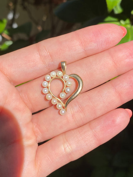 14k pearl heart pendant charm