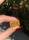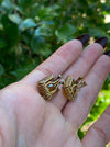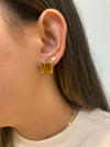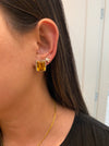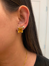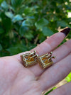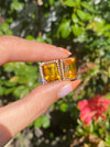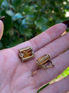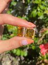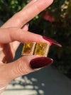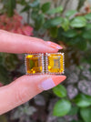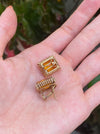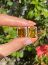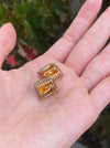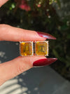 This is a set of vintage 14k citrine diamond omega back earrings. They have approx 10 carats of citrine and 0.6 tcw diamonds. They measure approx 15mm top to bottom and 13.3mm at the widest.  They are approx 7.9g