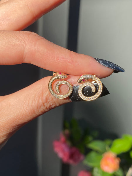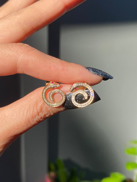 14k ruby diamond curled snake stud earrings