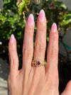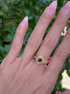 A bold yet romantic statement piece — perfect for collectors of vintage fine jewelry or anyone drawn to rich ruby tones paired with classic diamond brilliance.